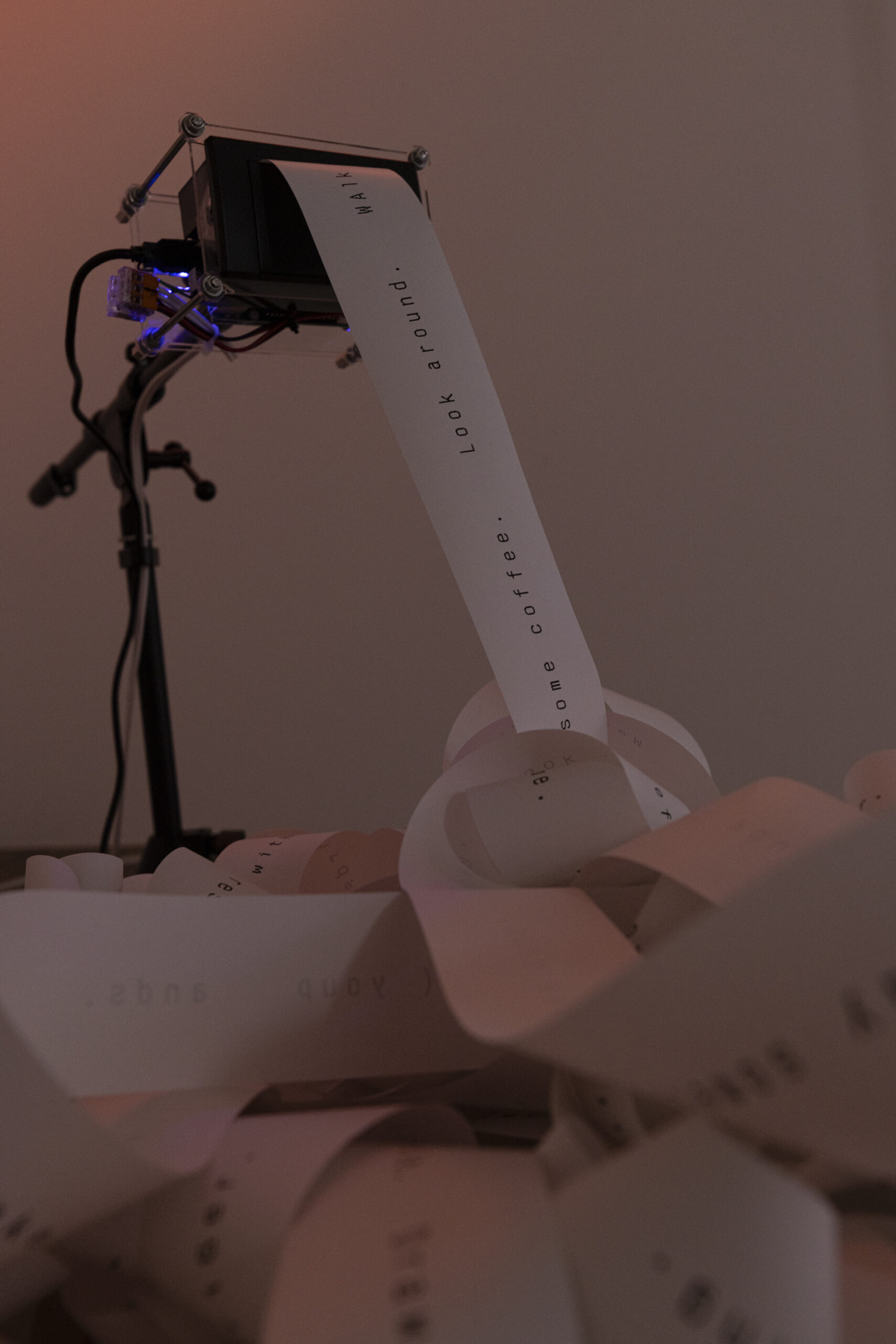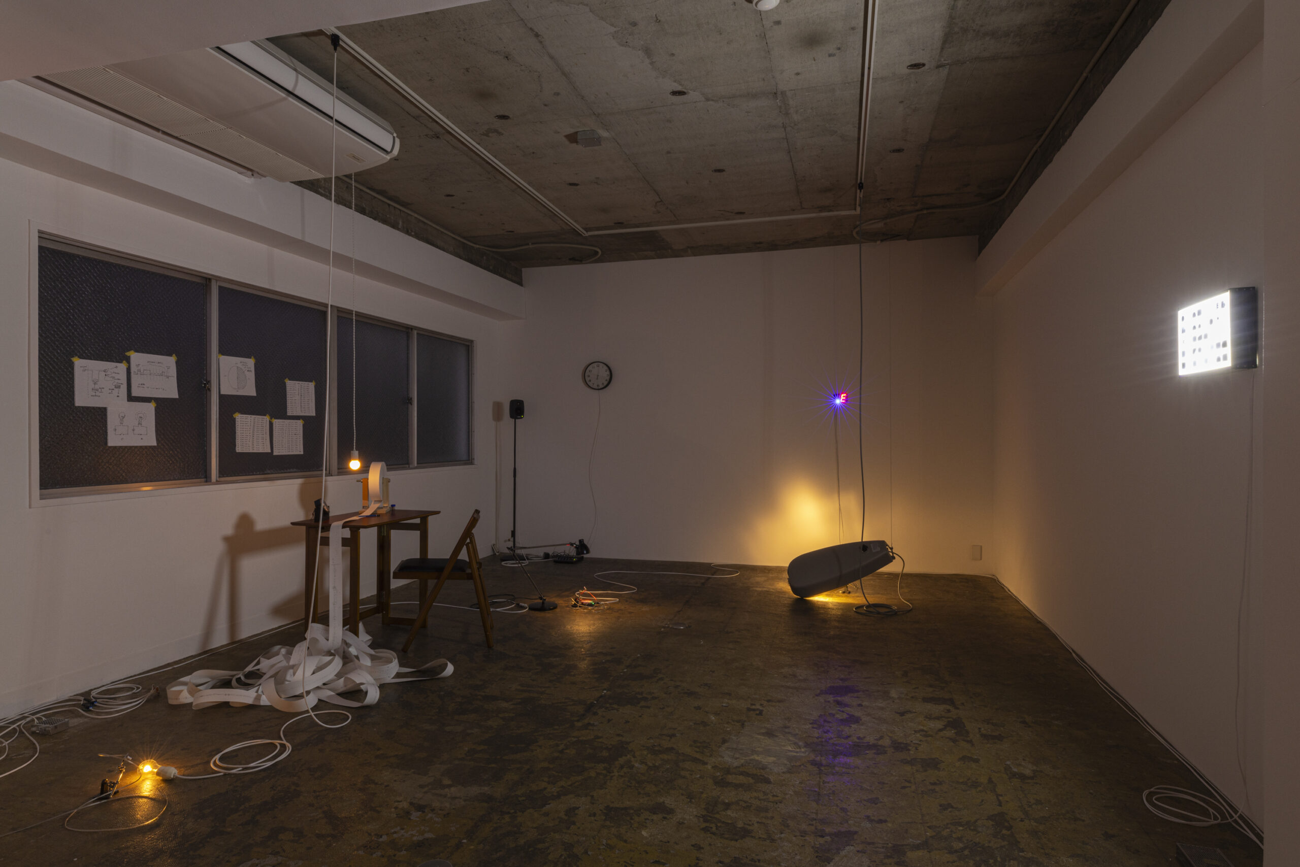 宮下恵太はこれまで、情報や電気、通信といった現代のインフラとしてのテクノロジーに焦点を当て、特定の機能を持ったシステムを構築することにより作品を制作してきました。本展は、「0か、1かということさえ判別可能であればどのようなものでもその伝達に用いることが可能である」というデジタルな信号のもつある意味でのおおらかさに着目し、わたしたちの身の回りにある様々な「光」の明滅を用いてメッセージの伝達を行うものです。我々の生活において、光は様々な意味を持っています。人間の暮らしの中に根ざした様々な光をコンビュータ同士の通信における信号として利用することで、人と機械という二項対立の関係を捉え直すことを試みます。