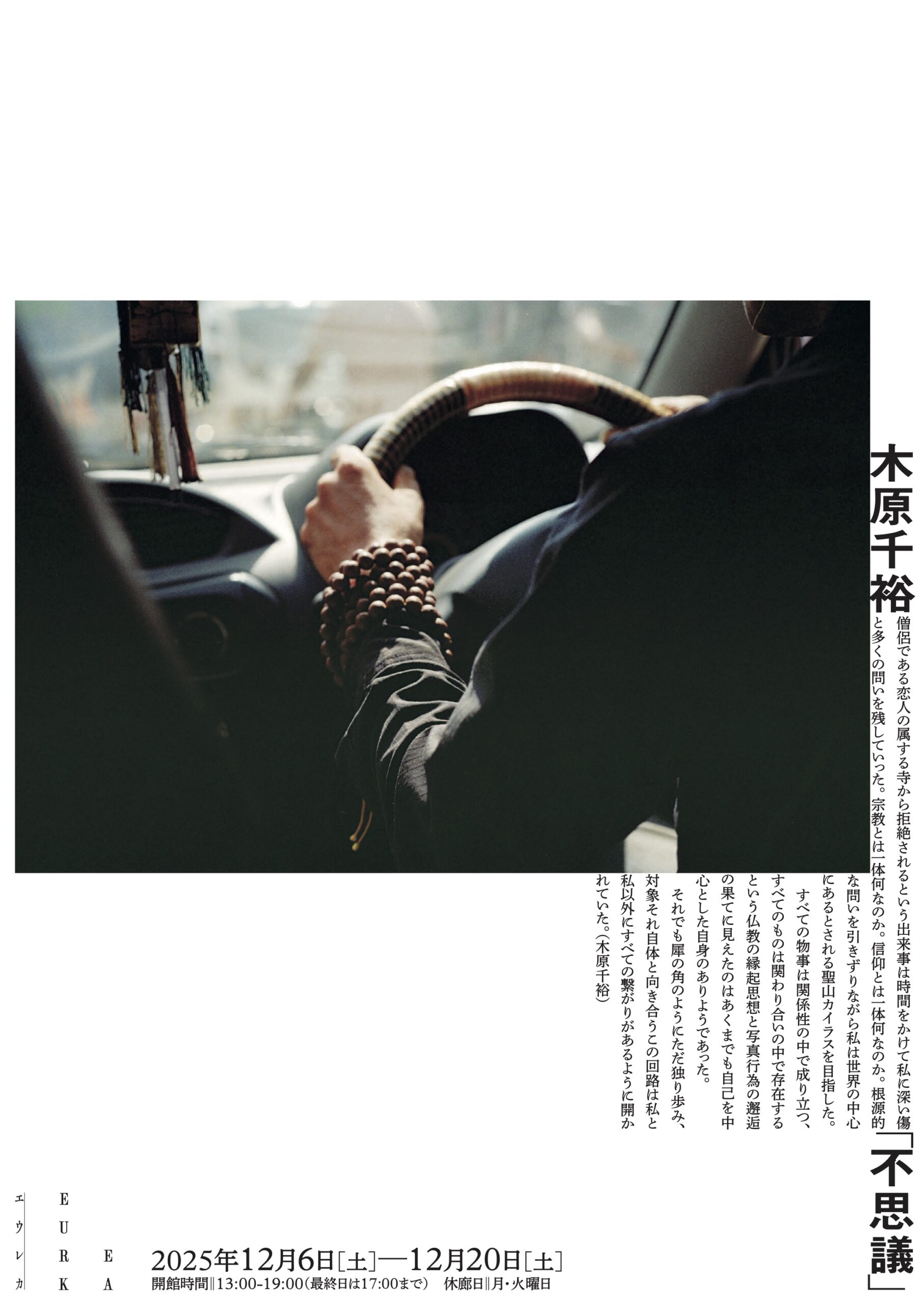 このたびEUREKAでは、2025年12月6日(土)から12月20日まで、写真家・木原千裕さんの写真集刊行を記念して、写真集に掲載されている作品約30点を展示する個展「不思議」を開催いたします。